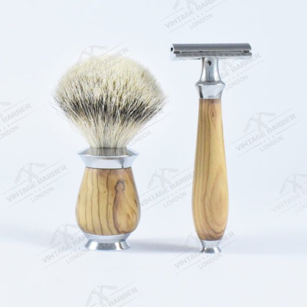 The Vintage Barbers is beautiful and functional is every way! Close shave with a traditional with shaving brush supper silvertip badger hair. A great everyday razor that’s equally suited for the novice or connoisseur. The handle is made from olive wood and chromed parts natural badger hairs knot size 18/58 mm. The handle is light weight to help improve grip during the shave. We use the same high standards of quality and the best possible quality standards available.